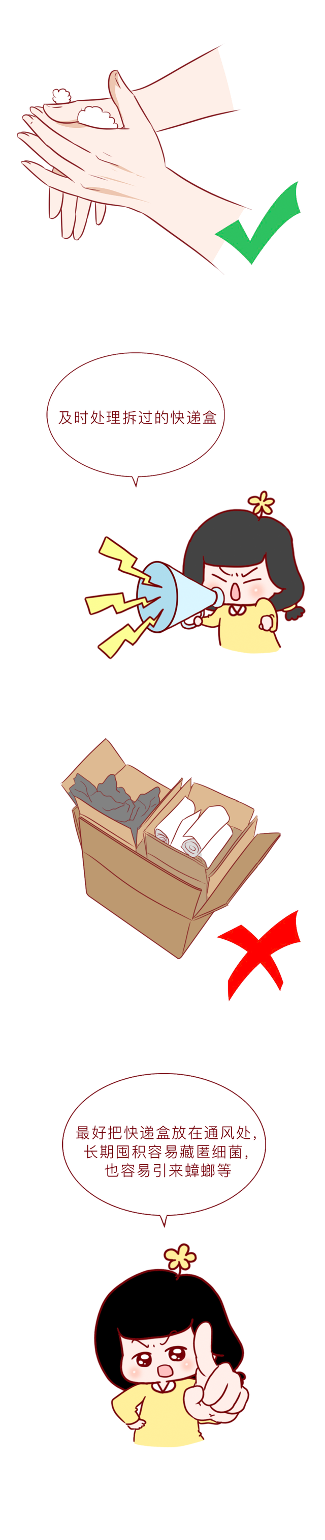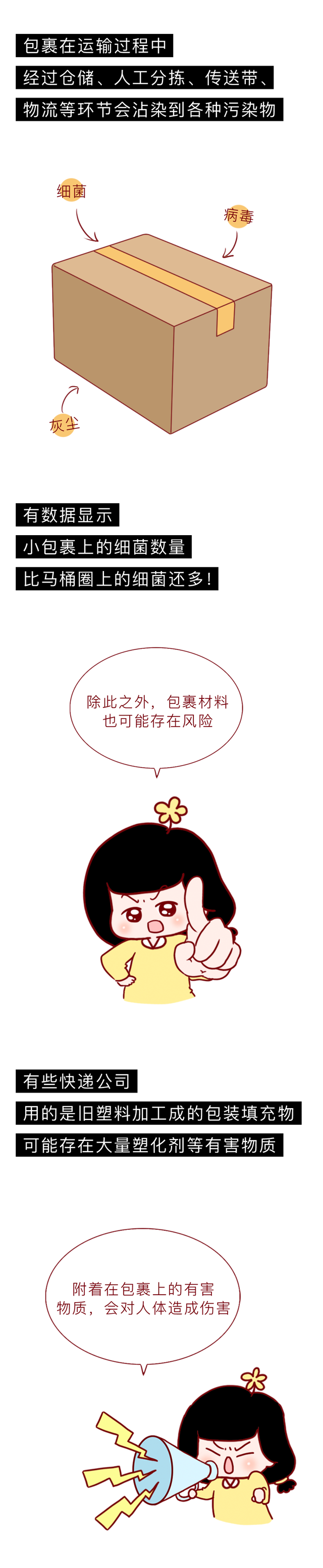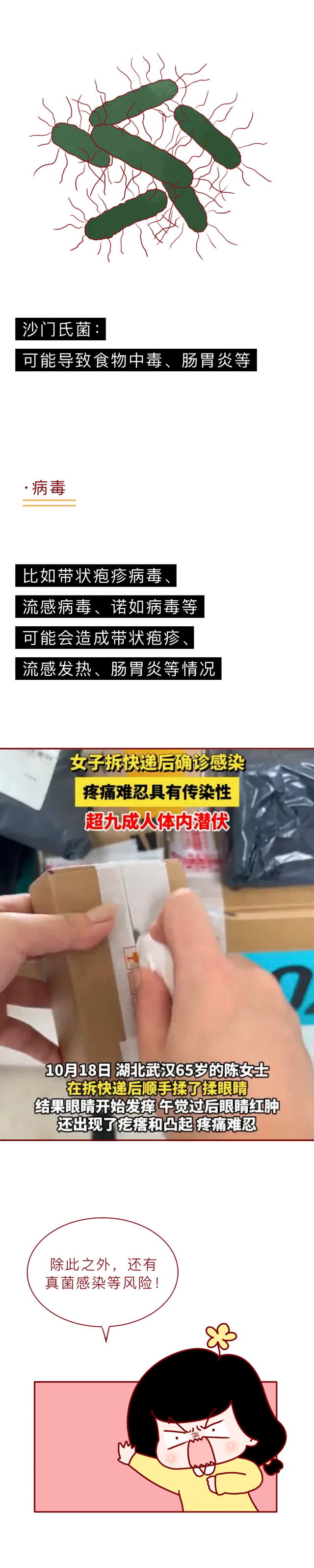 快递包裹历程输送后,上头会附着许多灰尘细菌等。这些看不见的细菌、灰尘、病毒、真菌等,会跟着东谈主手触摸跑到任何所在,是以拆完快递后一定要实时洗手消毒!不错用75%乙醇喷雾或含氯消毒液喷洒外包装,静置10-30分钟后再拆;拆件后实时洗手,幸免触碰眼、口、鼻,要是嗅觉到不适一定要实时去病院就医科罚! 有收寄快递民俗不详有囤积纸箱纸盒民俗的东谈主群,可将可回收的纸箱压扁后扎捆保存,放在透风处保抓干燥清洁,以便下次回收再应用。操心诡秘涌现不错涂抹地址进行摒除。 每个东谈主齐有过网购资历,不要让收包裹的兴盛中掺杂风险!关于那些免疫力低下的东谈主群开云体育,尽量不要战斗浑浊物! |