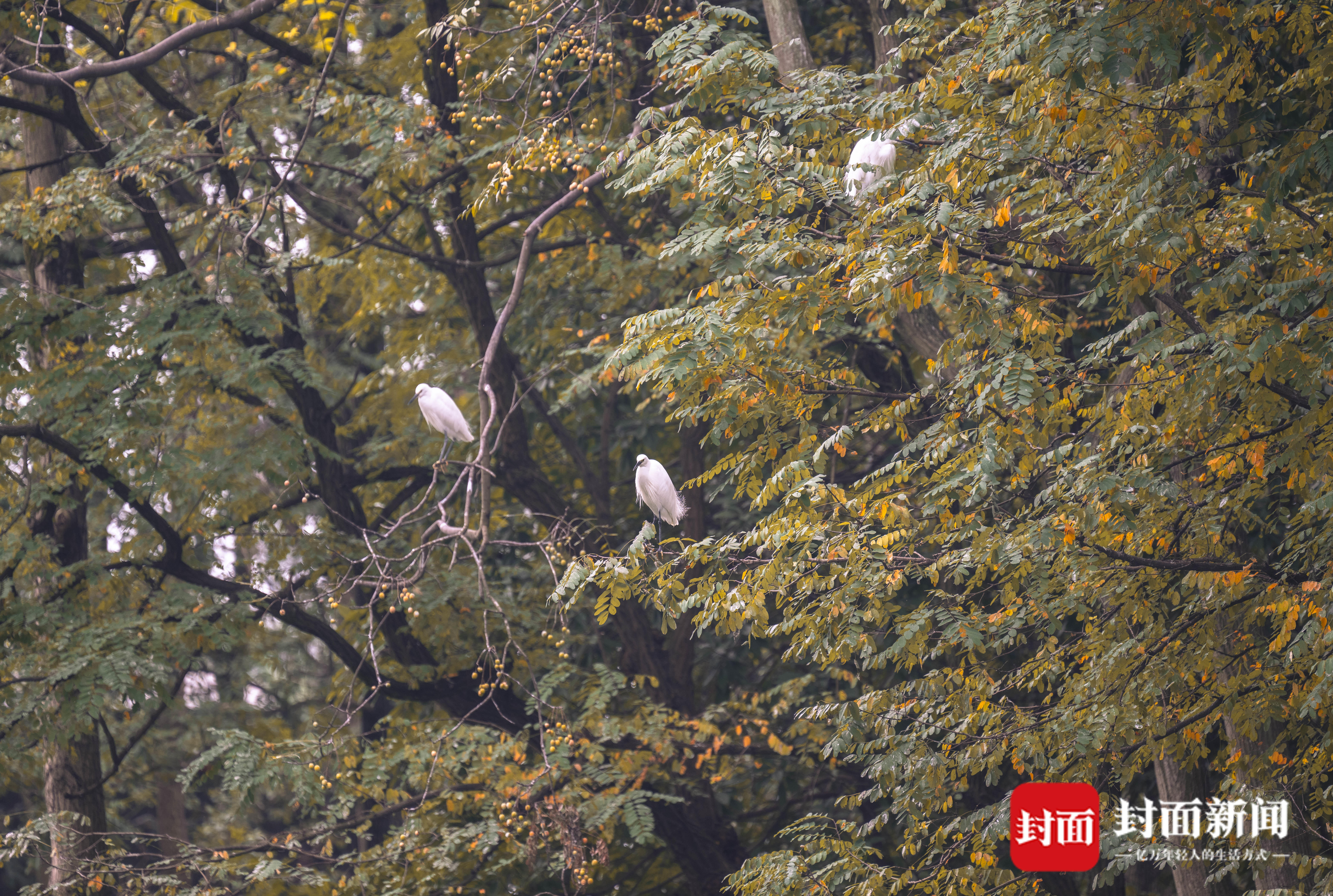 \n\t\t\t\t\t\t\t11月13日,成齐市蜀绣公园,树叶慢慢变黄,白鹭栖息在枝端。\n\t\t\t\t\t\t\t