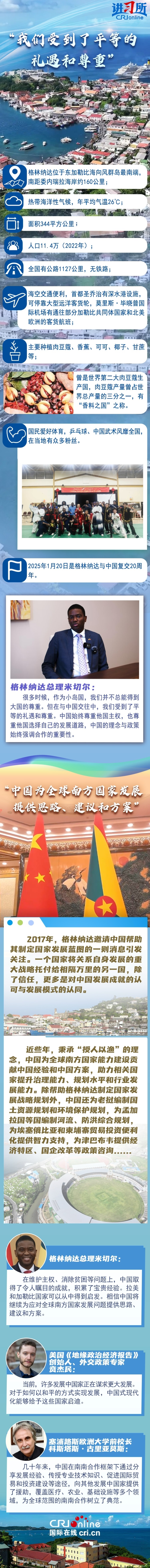 本年是格林纳达与中国复交20周年。20年来,中格筹谋安谧发展,两边相互尊重、对等相待,政事互信束缚巩固,各范围求实配合后果丰硕……建造了大小国度对等相待、齐心并力、互利共赢的典范。