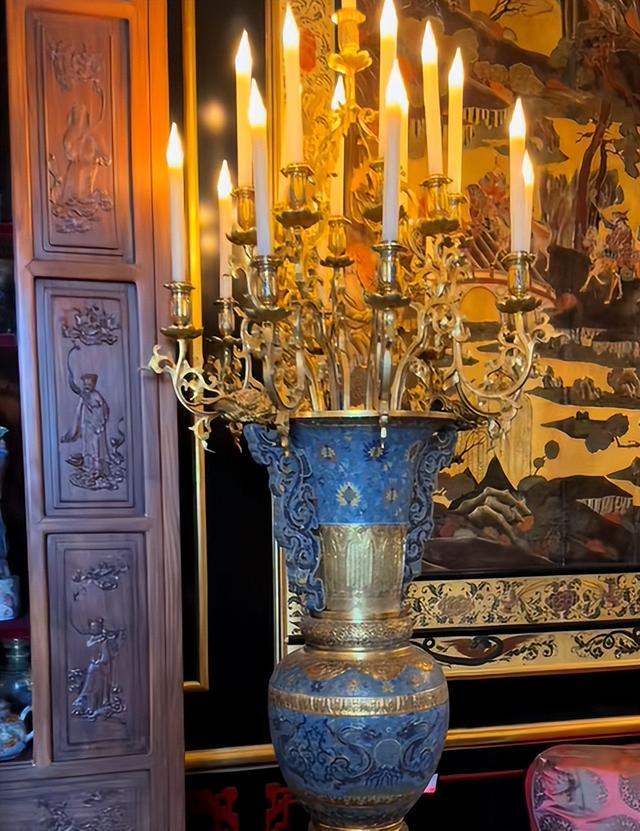 而其中多尊景泰蓝,还被当成了烛台,罐体内插满了金属用具。