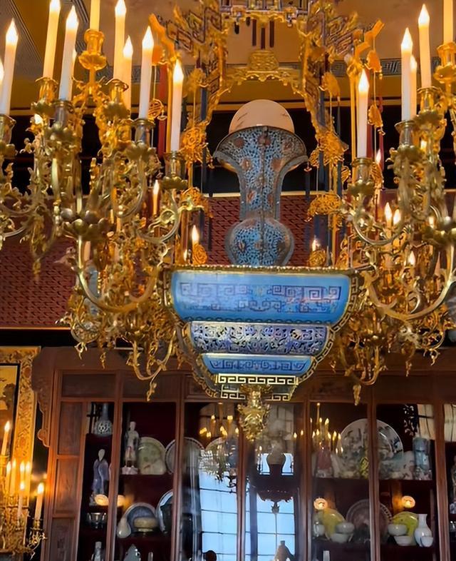 但在这尊熏炉的正上方,却又在灯具下吊了另一只熏炉的盖子,看上去相等纵脱。